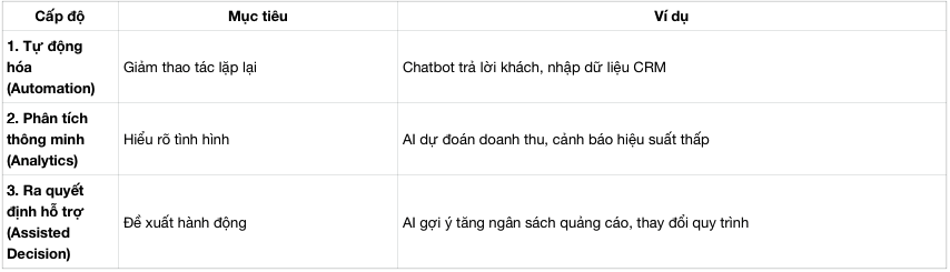→ thành kết quả (doanh thu, năng suất, trải nghiệm khách hàng).